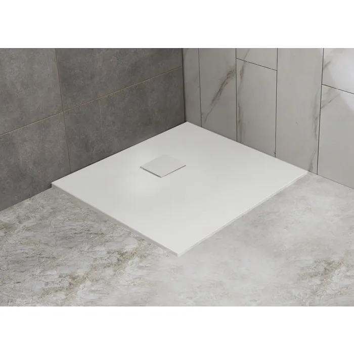 Douchebak 90×90 cm – Mat Wit Steenlook – Extra Dun, Anti-Slip & Modern Design