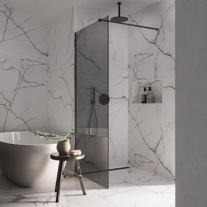 Geef je badkamer een moderne, exclusieve uitstraling met deze hoogwaardige inloopdouchewand met rookglas, uitgevoerd met stijlvol gunmetal beslag. Deze wand is ontworpen voor wie houdt van strak design, privacy en topkwaliteit materialen. De combinatie van donker glas met het warme, industriële gunmetal beslag zorgt voor een statement piece in elke moderne of industriële badkamer.