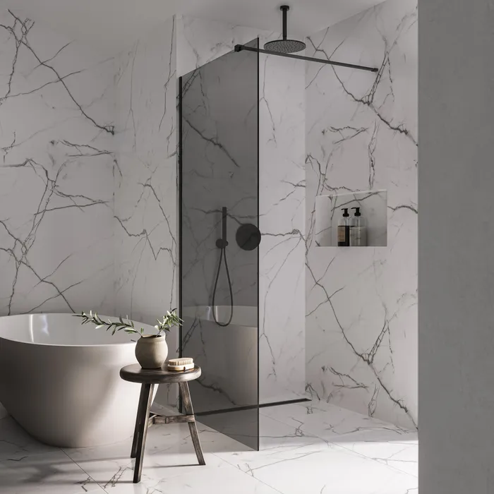 Douchewand rookglas matzwart – Luxe inloopdouchewand met anti-kalk coating