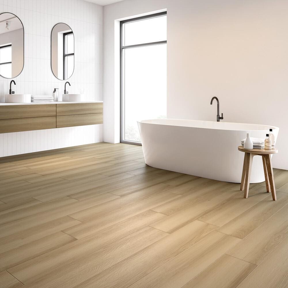 De warme houttint van de Marvel houtlook tegel maakt hem eenvoudig te combineren met verschillende interieurstijlen. Van een strak modern interieur tot een landelijke of Scandinavische woonstijl: deze tegel vormt altijd een harmonieuze basis. Ook in commerciële ruimtes zoals winkels, kantoren of horecagelegenheden komt de duurzame en luxe uitstraling van de Marvel tegel perfect tot zijn recht.